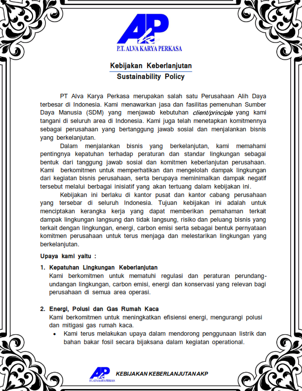 Through this policy, we are committed to implementing the concept of sustainability in every aspect of our business and operations. As part of the global effort to reduce greenhouse gas emissions, we are determined to support government programs and international initiatives through best management practices.